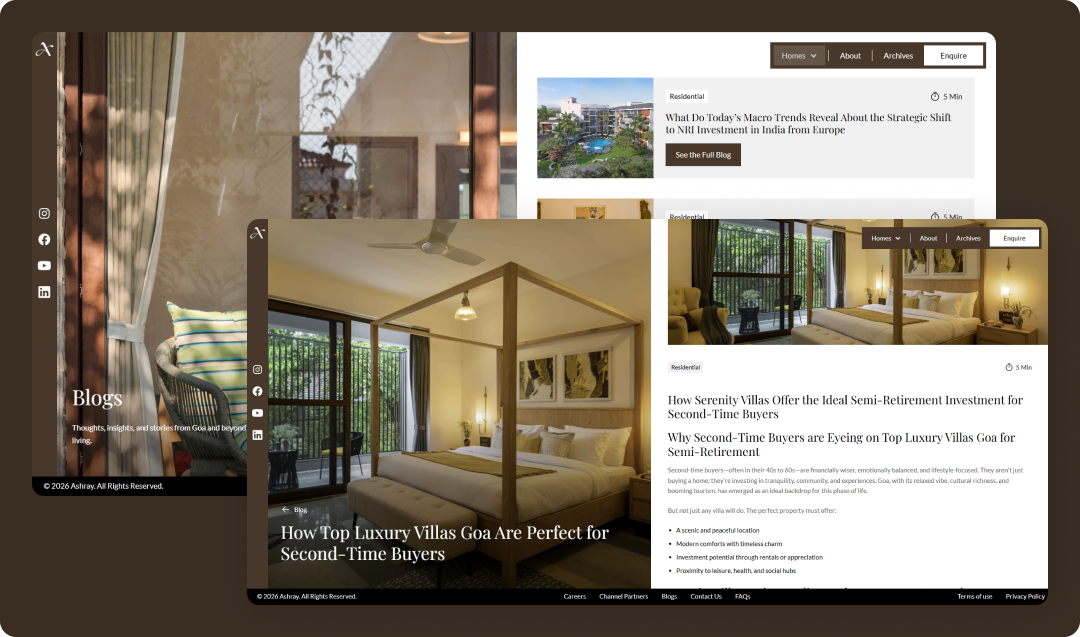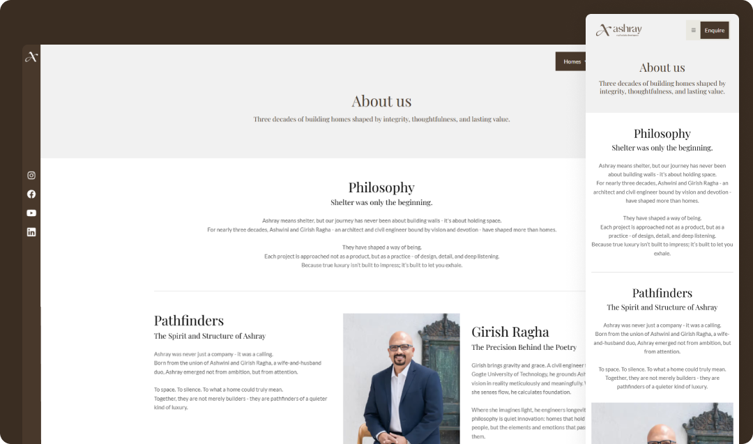 Ashray Developers now has a modern website that better reflects the quality of their real estate developments. The redesigned experience strengthens their brand presentation while providing a scalable platform that supports future growth.