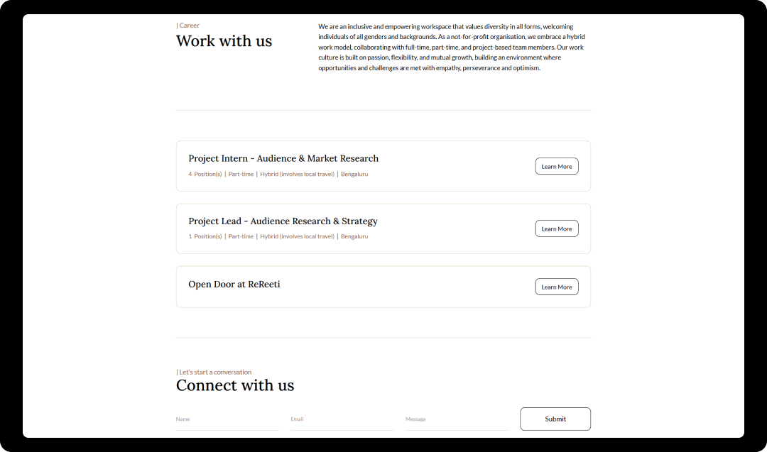 ReReeti now has a modern website that clearly presents their initiatives, improves the visitor experience, and provides a scalable platform that supports the organisation’s future growth.