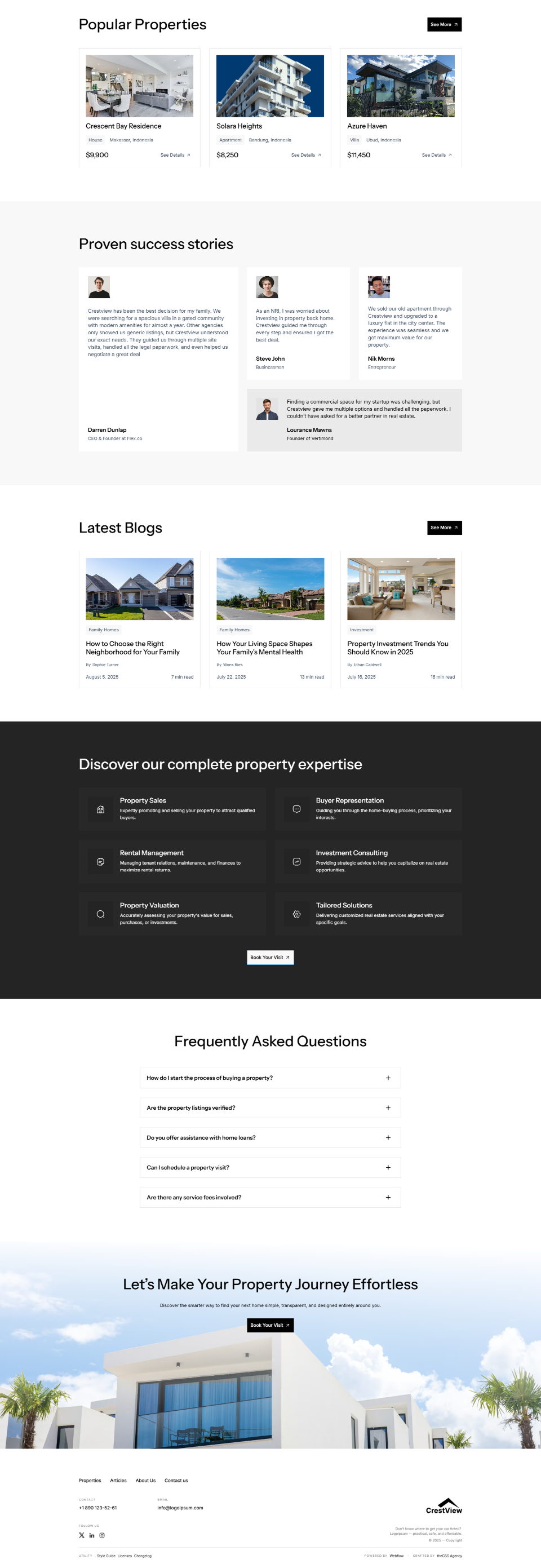 Crestview is a premium real estate Webflow template that combines modern design with powerful functionality—perfect for building a professional property website.